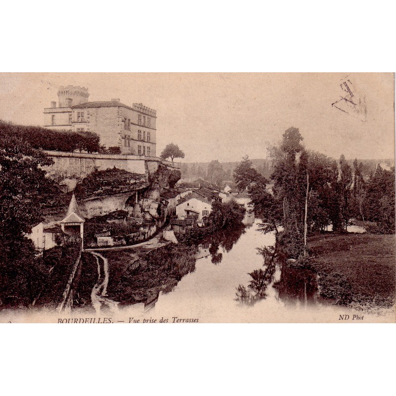 BOURDEILLES - VUE PRISE DES TERRASSES - CARTE DATEE DE 1906.