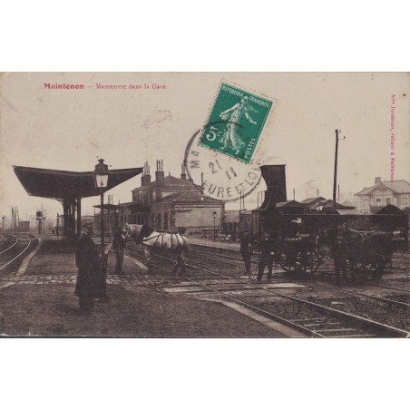 MAINTENON - MANOEUVRE DANS LA GARE - ANIMATION - ATTELAGE  - CARTE DATEE DE 1911.