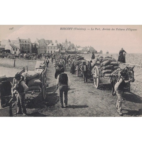 ROSCOFF - LE PORT - ARRIVEE DES VOITURES D'OIGNONS - ATTELAGES - CARTENON CIRCULEE.