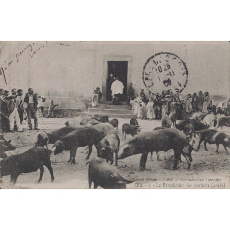 ZILIA - LA BENEDICTION DES COCHONS - CARTE DATEE DE 1908..