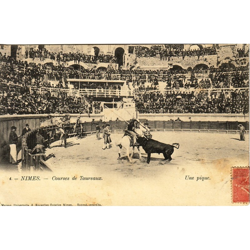 NIMES - COURSES DE TAUREAUX -  UNE PIQUE - CARTE DATEE DE 1905.