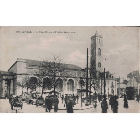 LORIENT - LA PLACE BISSON ET L'EGLISE ST LOUIS - ANIMATION - CARTE NON CIRCULEE.