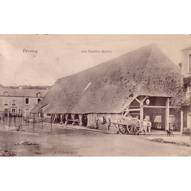 DIVES - LES VIEILLES HALLES - ATTELAGE - CARTE AVEC TEXTE.
