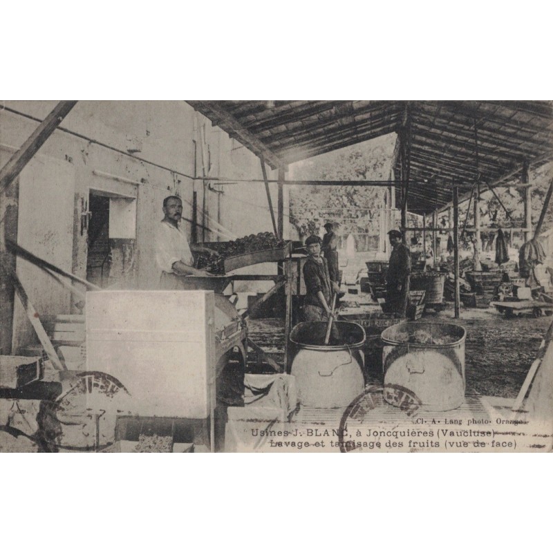 • JONCQUIERES - USINES J. BLANC - LAVAGE ET TAMISAGE DES FRUITS - ANIMATION - METIER - CARTE DATEE DE 1916.