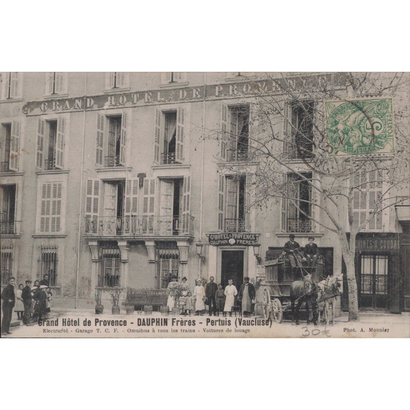 • PERTUIS - GRAND HOTEL DE PROVENCE - DAUPHIN FRERES - ATTELAGE - ANIMATION - CARTE DATEE DE1907.
