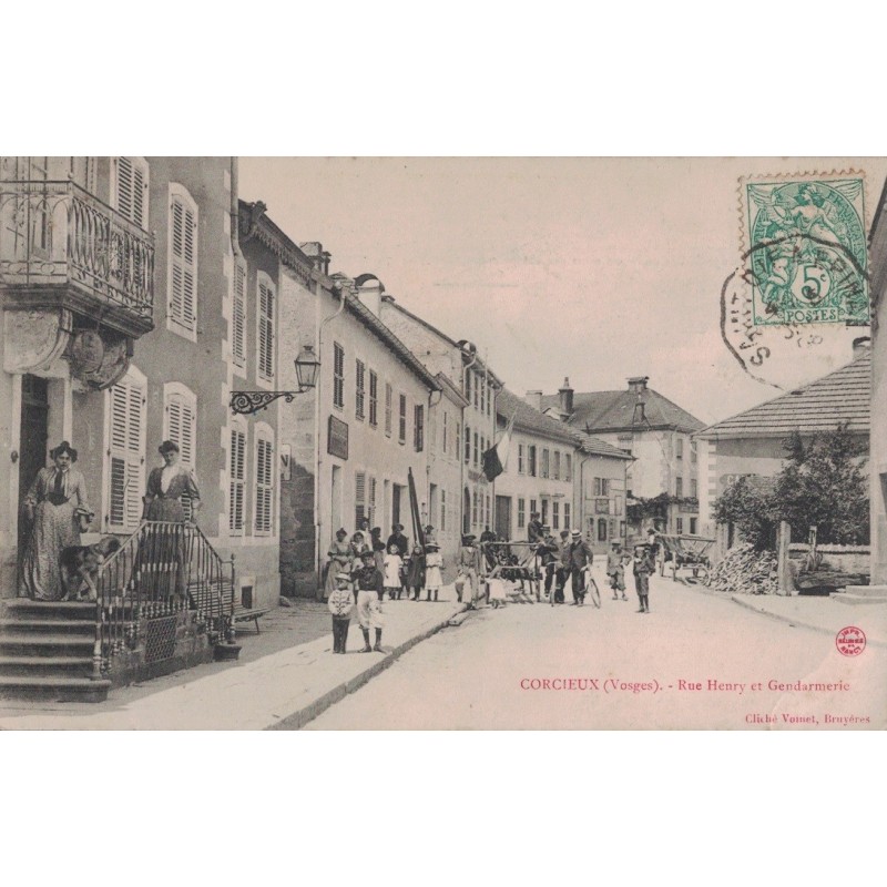 • CORCIEUX - RUE HENRY ET GENDARMERIE - ANIMATION - ENFANTS - CARTE DATEE DE 1906.
