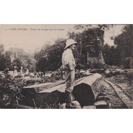 COTE D'IVOIRE - TRAVAIL DE L'ACAJOU DANS LA BROUSSE - ANIMATION - CARTE NON CIRCULEE