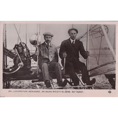 • WILBURG WRIGTH ET ZENS - SUR BIPLAN - LOCOMOTION AERIENNE - CARTE DATEE DE 1910.