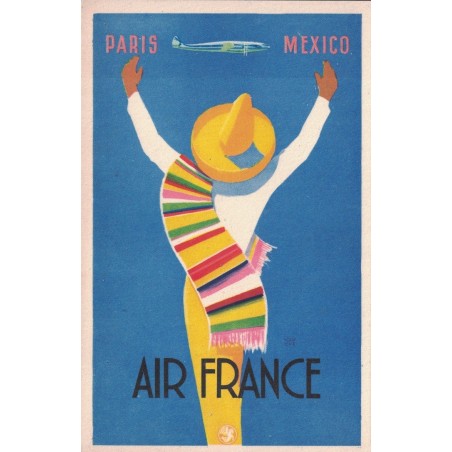 AIR FRANCE - CARTE POSTALE OFFICIELLE PUB PARIS MEXICO - PARFAIT POUR ILLUSTRER UNE COLLECTION AERIENNE.