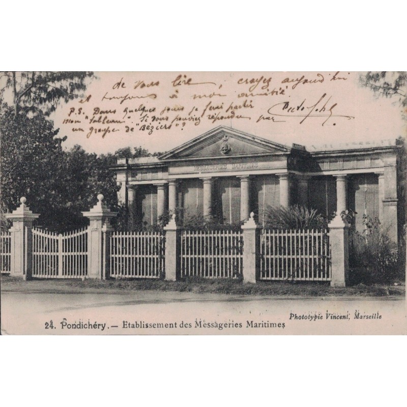 MESSAGERIES MARITIMES - PONDICHERY - ETABLISSEMENT DES MESSAGERIES MARITIMES - CARTE DATEE DE 1918.