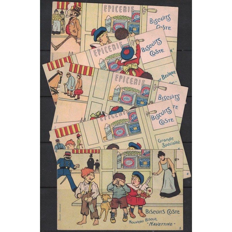 MARSEILLE - BISCUIT COSTE - SERIE DE 5 CARTES POSTALES  -  EDITEUR MOULLOT - NON CIRCULEE.