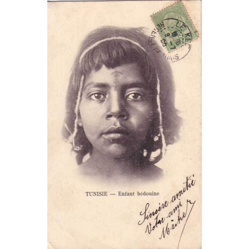 • TUNISIE - ENFANT BEDOUINE - CACHET LE KEF REGENCE DE TUNIS 1905.