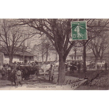 OYONNAX - LE CHAMP DE FOIRE - LE MARCHE AU BESTIAUX - CARTE DATEE DE 1907.