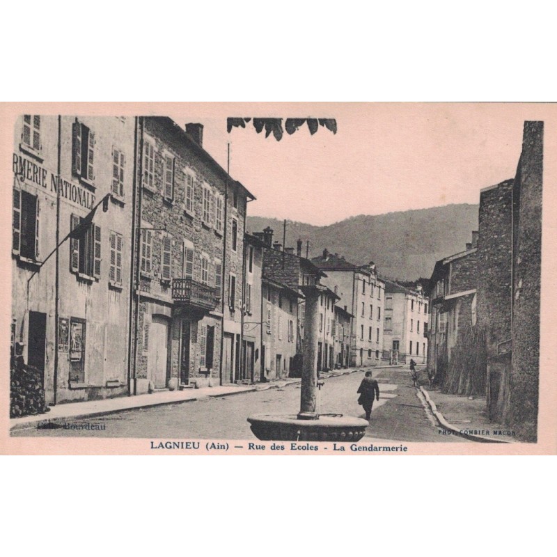 LAGNIEU - RUE DES ECOLES - LA GENDARMERIE NATIONALE A GAUCHE - CARTE DATEE DE 1935.