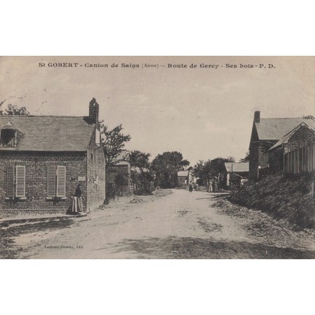 • ST GOBERT - CANTON DE SAINS - ROUTE DE GERCY - SES BOIS - CARTE DATEE DE 1912 - PEU COURANTE.