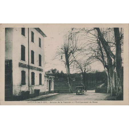 GREOUX LES BAINS - AVENUE DE LA FONTAINE ET L'ETABLISSEMENT DES BAINS - CARTE DATEE DE 1930.