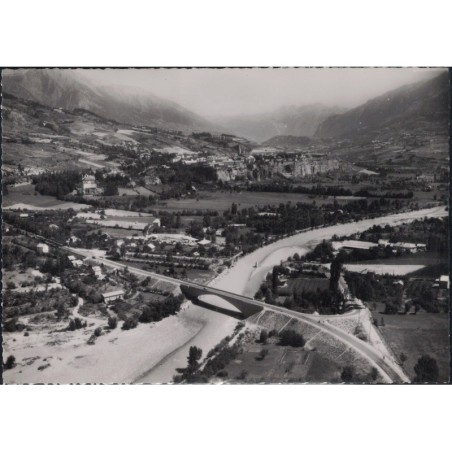 • EMBRUN - VUE AERIENNE SUR LE NOUVEAU PONT - VALLEE DE LA DURANCE - EMBRUN AU FOND - CARTE NEUVE.