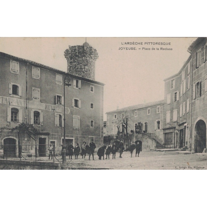 JOYEUSE - PLACE DE LA RECLUSE - RESTAURANT REYNOARD - ANIMATION - CARTE DATEE DE 1909.