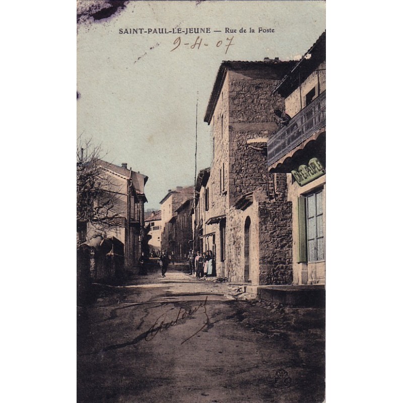 SAINT PAUL LE JEUNE - RUE DE LA POSTE - ANIMATION - PEU COURANTE - CARTE DATEE DE 1907.