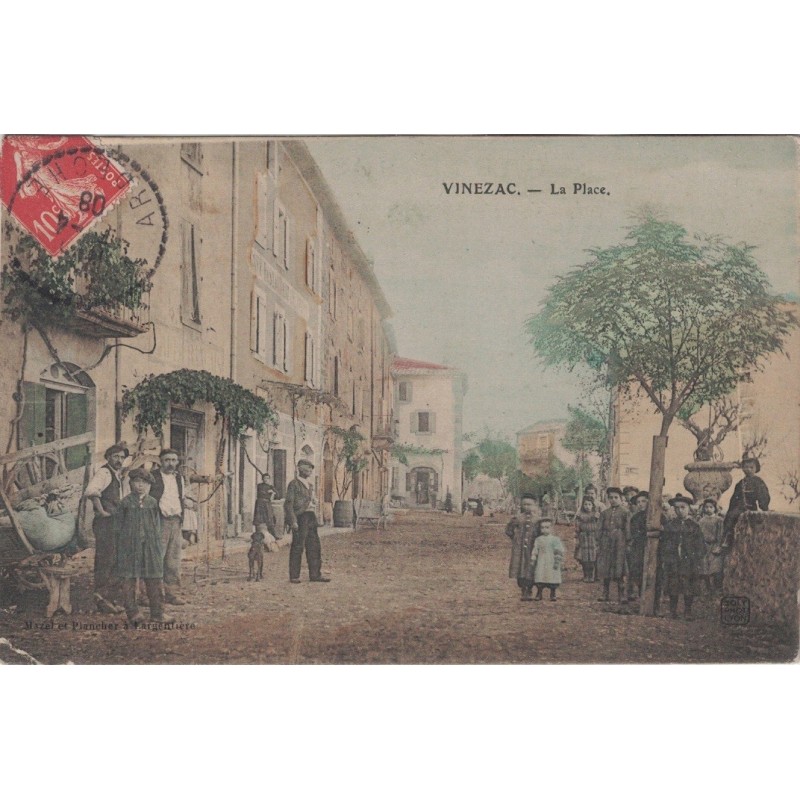 • VINEZAC - LA PLACE - CARTE COULEUR DE 1908 - PEU COURANTE.