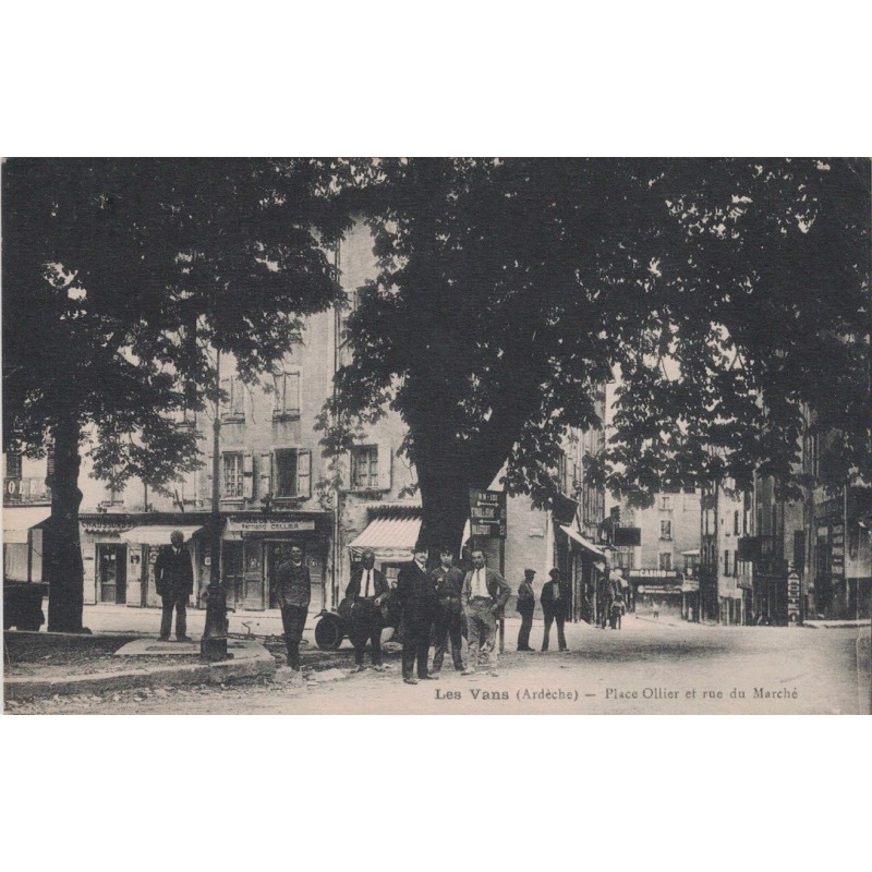 • LES VANS - PLACE OLLIER ET RUE DU MARCHE - CARTE DATEE DE 1936.