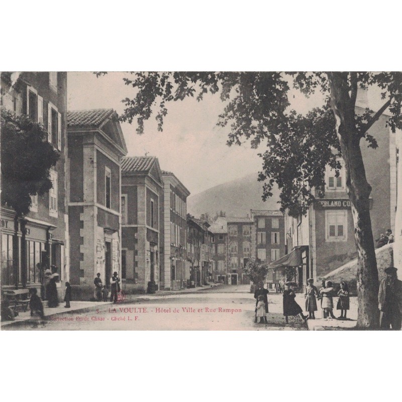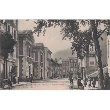 • LA VOULTE - HOTEL DE VILLE ET RUE RAMPON - ANIMATION ET COMMERCE - CARTE DATEE DE 1906.