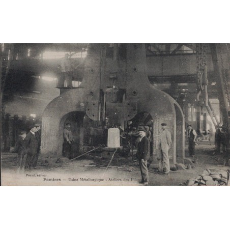 PAMIERS - USINE METALLURGIQUE - ATELIERS DES PILONS - ANIMATION - CARTE DATEE DE 1910.