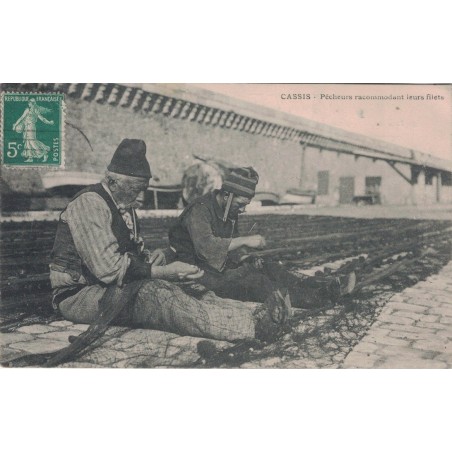 • CASSIS - PECHEURS RACOMMODANT LEURS FILETS - GROS PLAN - VIEUX METIERS.