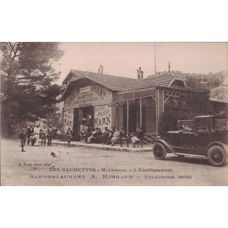 LES BAUMETTES - MAZARGUES - L'ETABLISSEMENT BAR-RESTAURANT A.RIMBAUD - CARTE NEUVE ANNOTATION VERSO JEUDI 2 AOUT 1829 - TOP CARTE - ANIMATION - VOITURE.