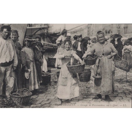 MARSEILLE - GROUPE DE POISSONNIERES SUR LE QUAI - SUPERBE CARTE NEUVE.