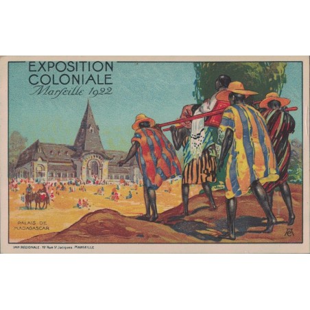 MARSEILLE - EXPOSITION COLONIALE MARSEILLE 1922 - PALAIS DE MADAGASCAR - CARTE NON CIRCULEE.