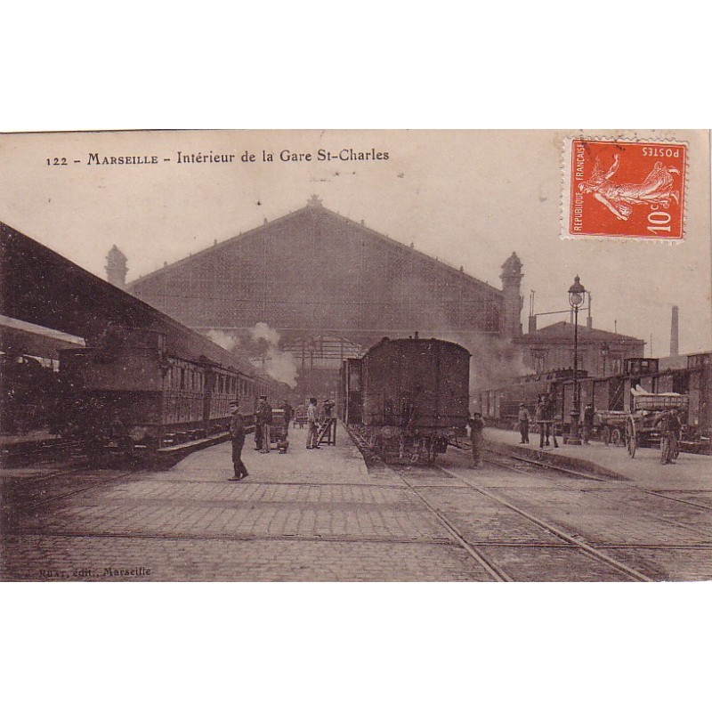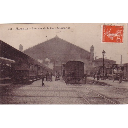 MARSEILLE - INTERIEUR DE LA GARE ST CHARLES - RARE - AVEC TEXTE.