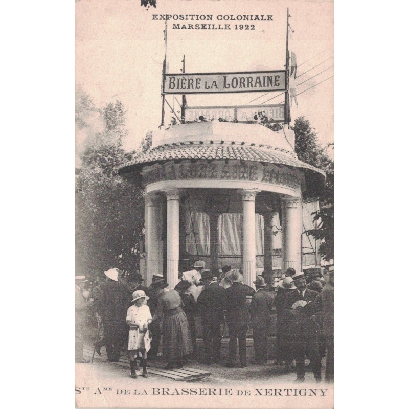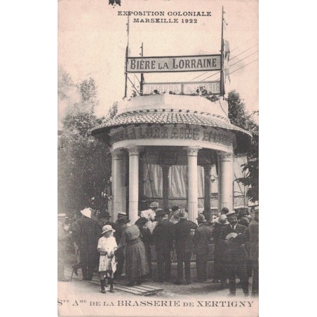 • MARSEILLE - EXPOSITION COLONIALE DE 1922 - BRASSERIE DE XERTIGNY - BIERE LA LORRAINE - CARTE AVEC TEXTE.
