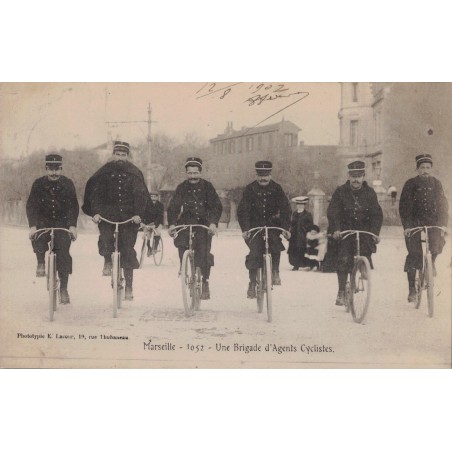 MARSEILLE - UNE BRIGADE D'AGENTS CYCLISTES - POLICE - VELO - CARTE DATEE DE 1906.