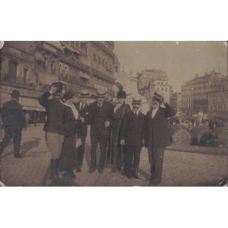 MARSEILLE - ENVIRON DU VIEUX PORT - ARRIERE PLAN HOTEL DE GENEVE - ANIMATION - CARTE PHOTO NON CIRCULEE - RARE.