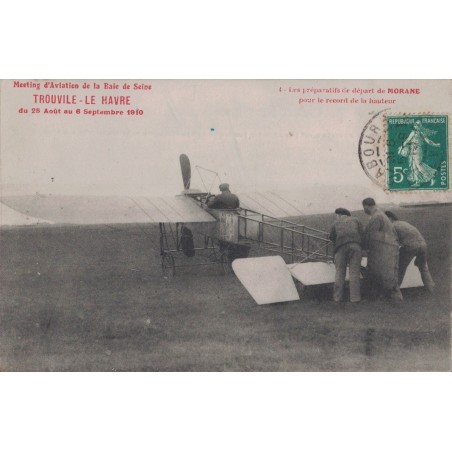 TROUVILLE - LE HAVRE - MEETING D'AVIATION DE LA BAIE DE SEINE EN 1910  - DEPART DE MORANE - CARTE DATEE DE 1910.