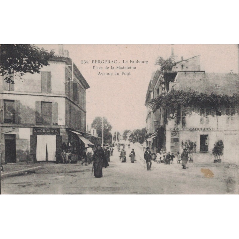 BERGERAC - LE FAUBOURG - OLACE DE LA MADELEINE - AVENUE DU PONT - CARTE AVEC TEXTE.