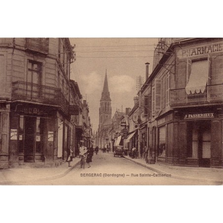 • BERGERAC - RUE SAINTE-CATHERINE - LA PHARMACIE J.PASSERIEUX - CARTE DATEE DE 1932.