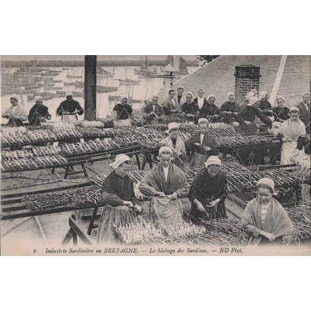 • DOUARNENEZ - LE SECHAGE DES SARDINES - INDUSTRIE DE LA SARDINIERE - ANIMATION - CARTE NON CIRCULEE.