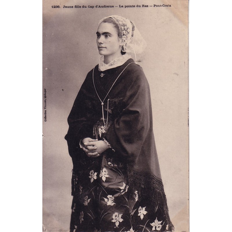 AUDIERNE - JEUNE FILLE DU CAP D'AUDIERNE - LA POINTE DU RAZ - PONT-CROIX - CARTE NON CIRCULEE - ANGLE HAUT DROIT TRACE D'ALBUM .