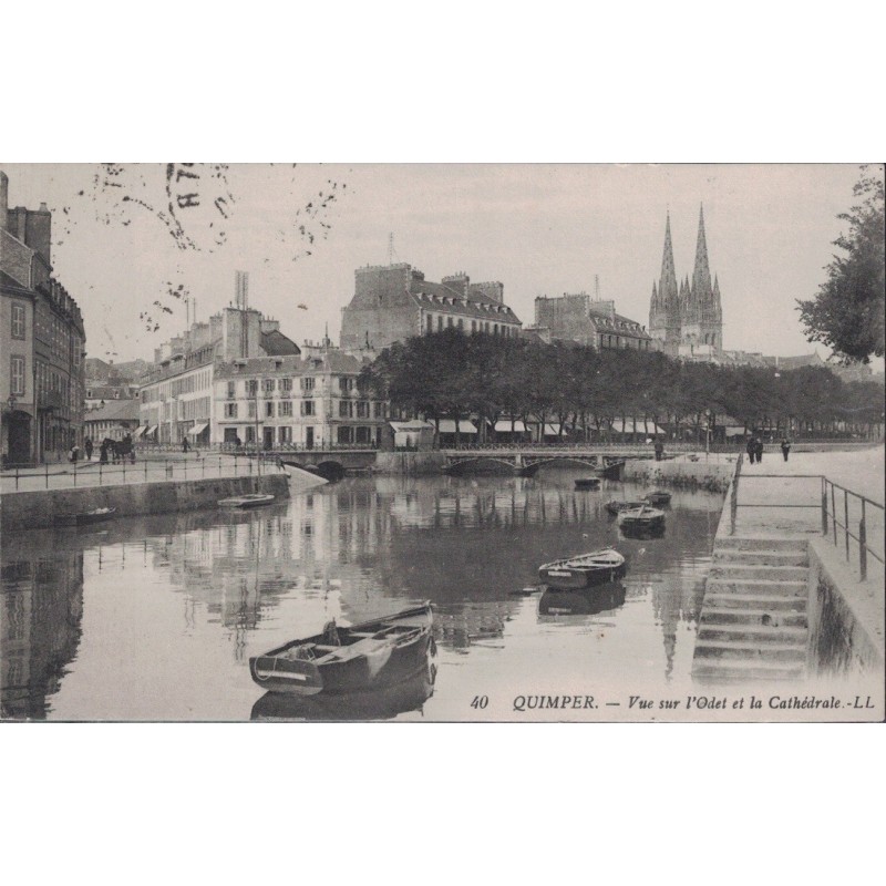 • QUIMPER - VUE SUR L'ODET ET LA CATHEDRALE - CARTE DATEE DE 1914.