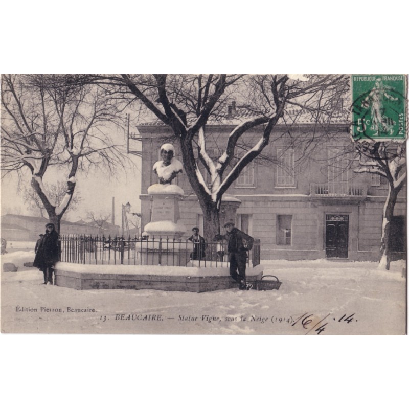 BEAUCAIRE - STATUE VIGNE SOUS LA NEIGE 1914.