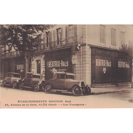 ALAIS - ETABLISSEMENT BASTIDE AINE - 28 AVENUE DE LA GARE - LES VOYAGEURS AU VOLANT DES VOITURES - CARTE NON CIRCULEE.