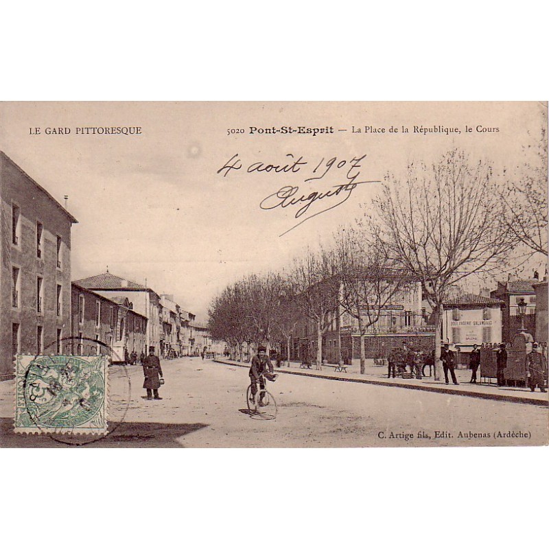• PONT ST ESPRIT - LA PLACE DE LA REPUBLIQUE - CARTE DATEE DE 1907.
