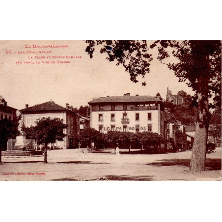 • SALIES DU SALAT - LA PLACE ET STATUE COMPANS - CARTE NON CIRCULEE.