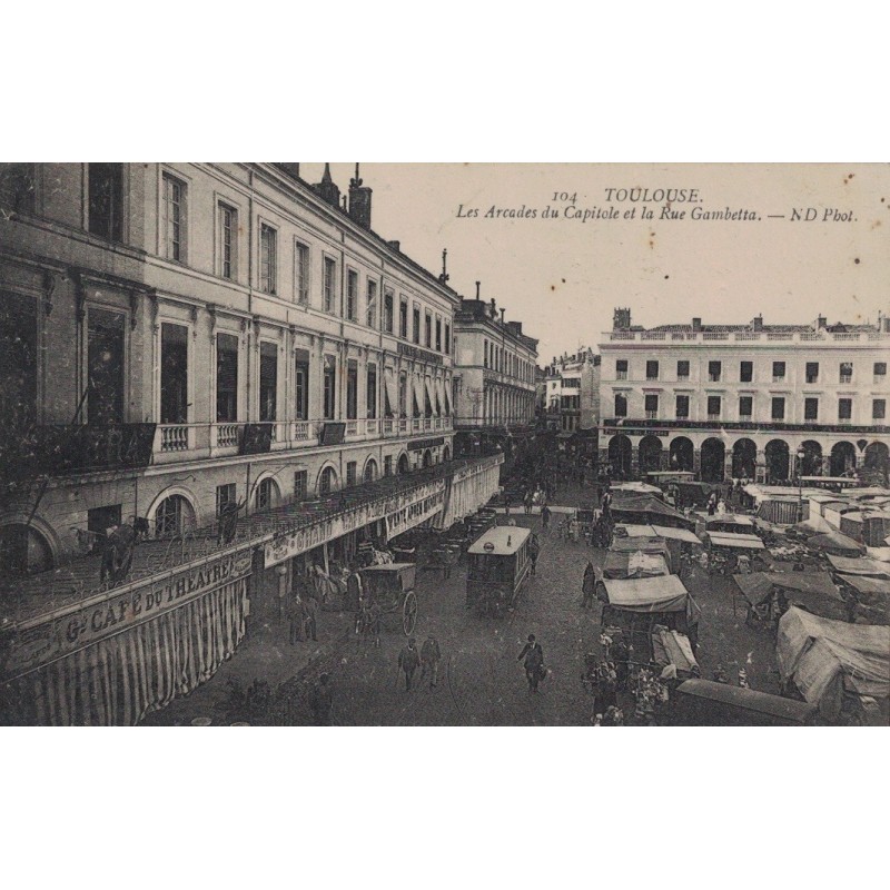TOULOUSE - LES ARCADES DU CAPITOLE ET LA RUE GAMBETTA - CARTE DATEE DE 1910.
