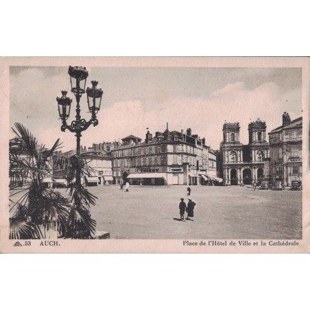 AUCH - PLACE DE L'HOTEL DE VILLE ET LA CATHEDRALE - CARTE DATEE DE 1940.