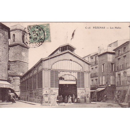 PEZENAS - LES HALLES - DATEE DE 1907.