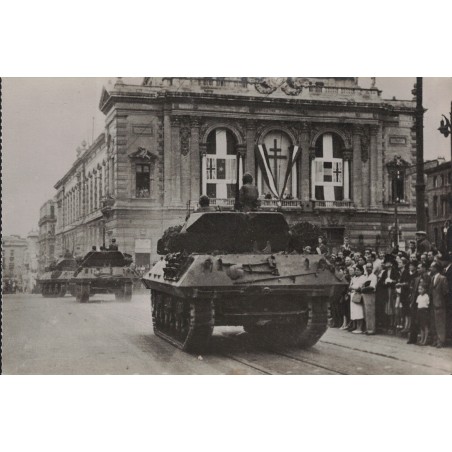 • MONTPELLIER - LIBERATION DE MONTPELLIER - LES CHARS DEFILENT - CARTENON CIRCULEE.