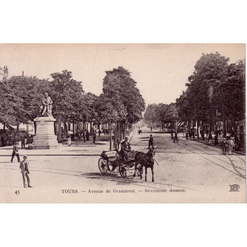 TOURS - AVENUE DE GRAMMONT - ATTELAGE - CARTE NEUVE.